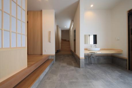 木造2階のひろ~い2世帯住宅! 玄関入ると、自転車も何台か入れることができる土間空間。 1階は親世帯で、2階が息子夫婦の世帯となっています。 広い中庭ではバーベキューも楽しむことができます。